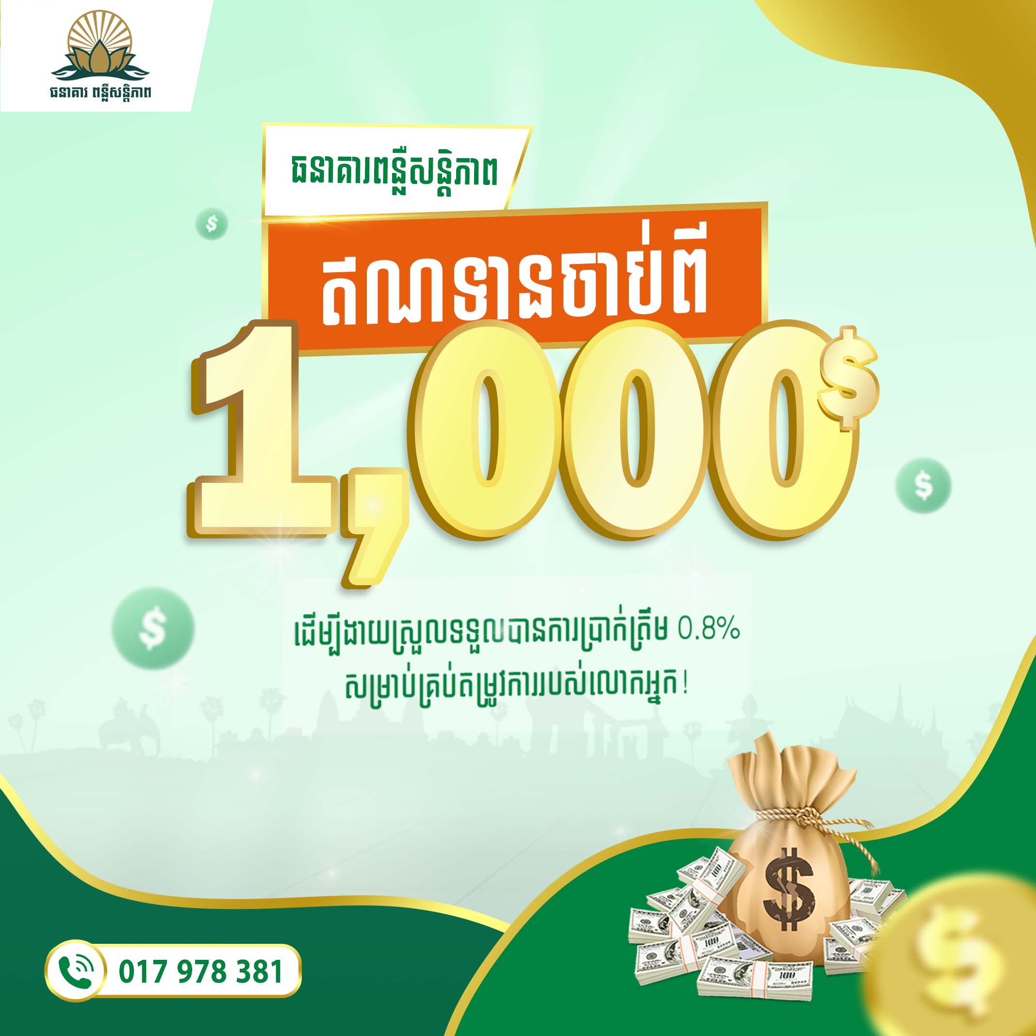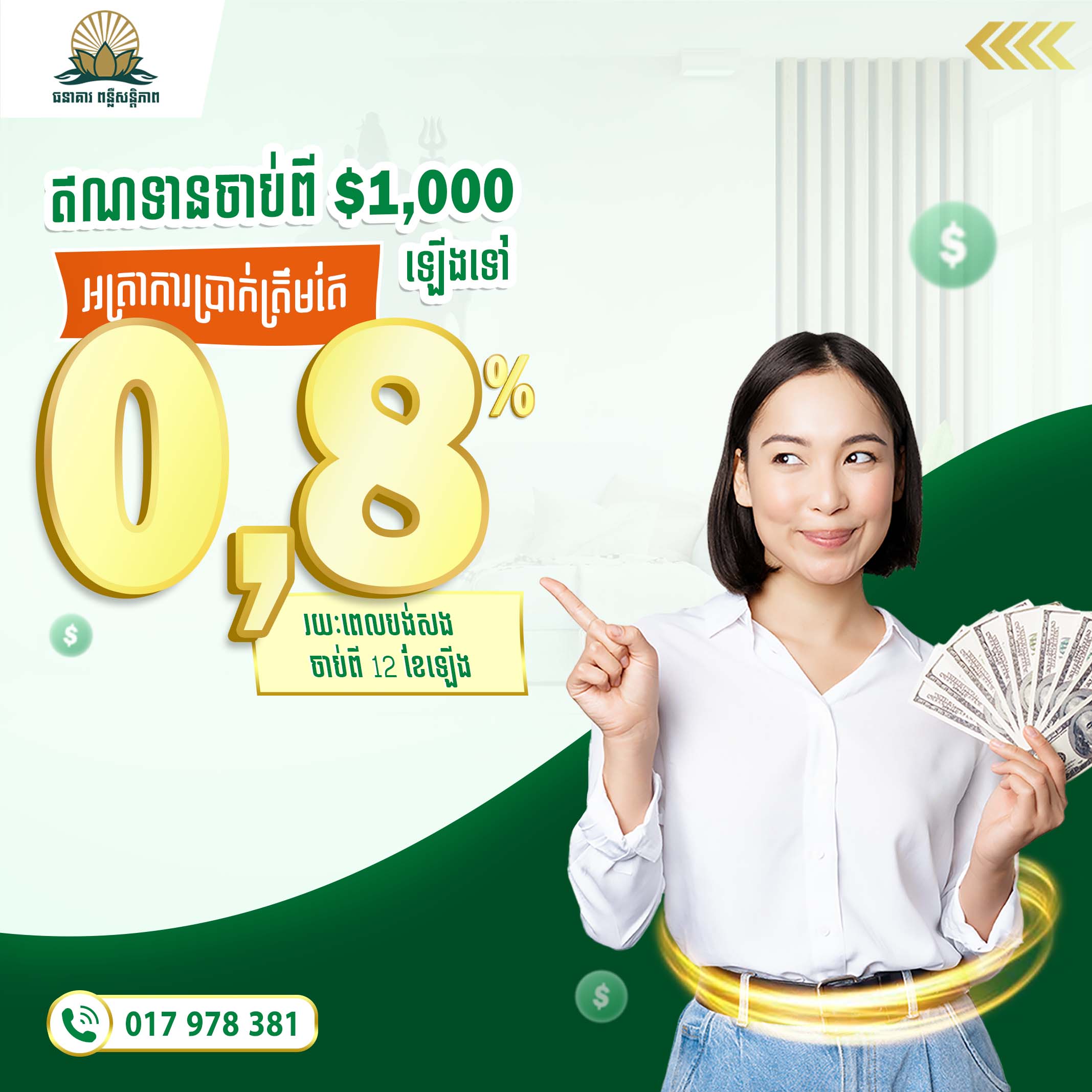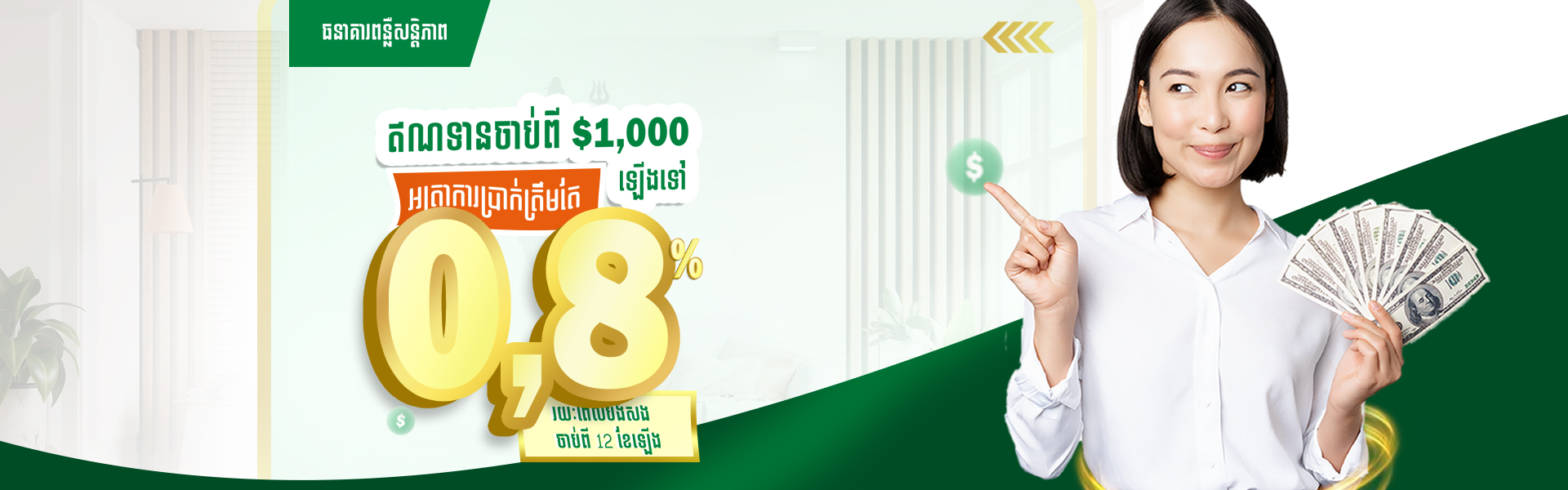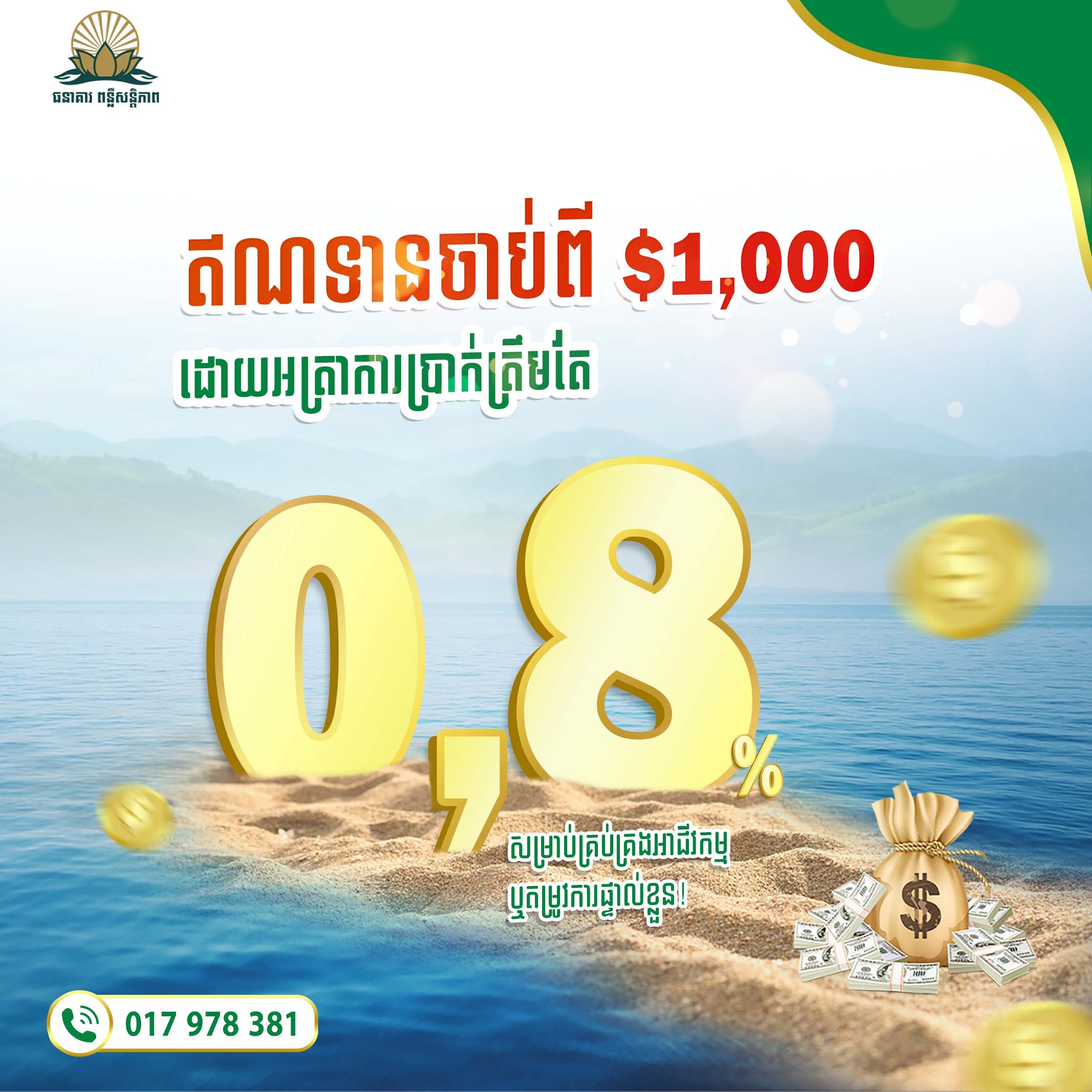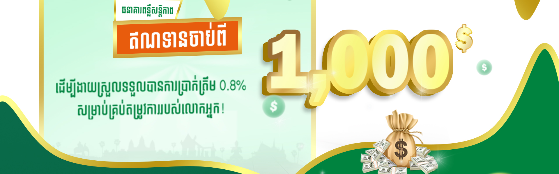 ចំនួនដាក់សន្សំប្រចាំខែតិច ចាប់ពី ៤០.០០០រៀល ឬ ១០ដុល្លារ