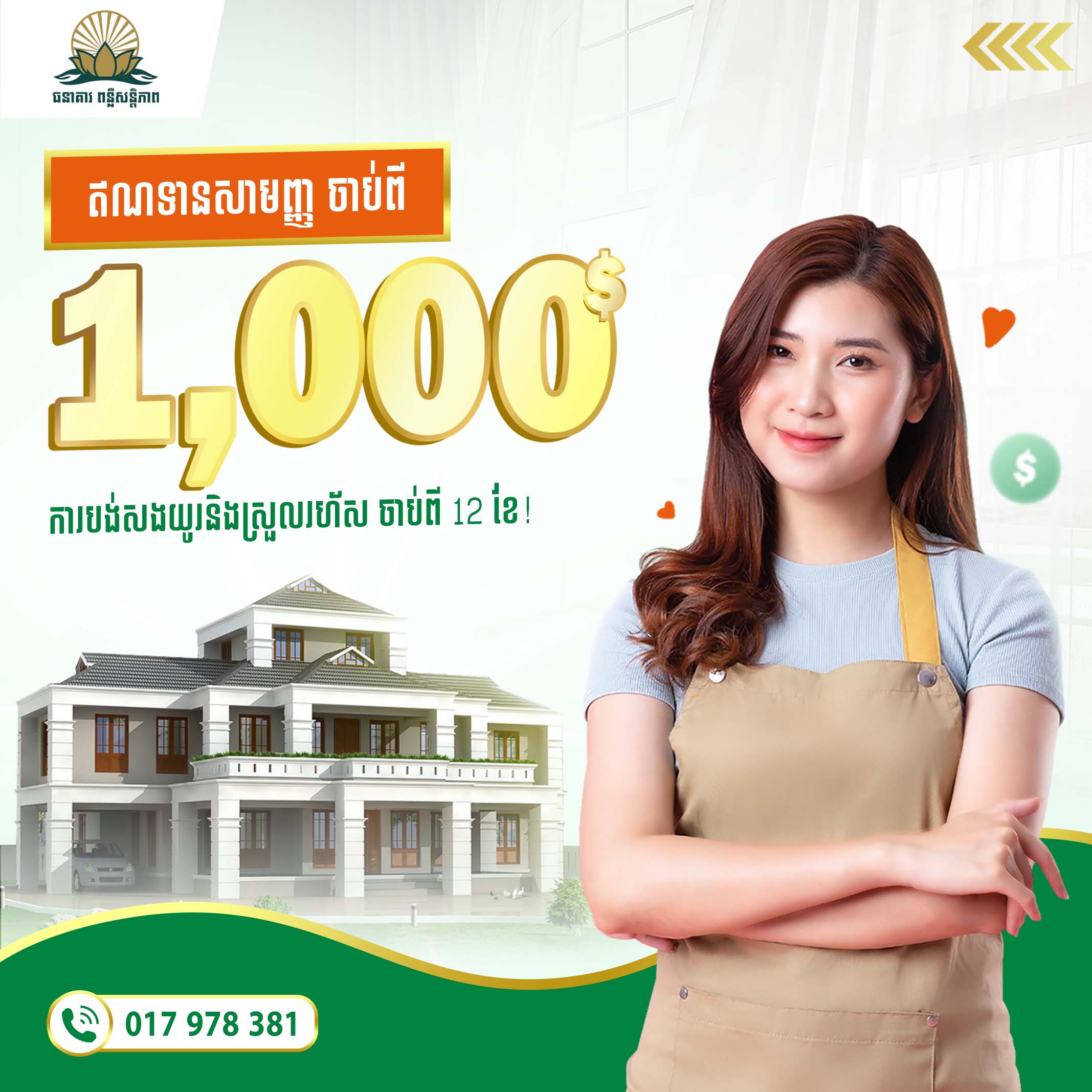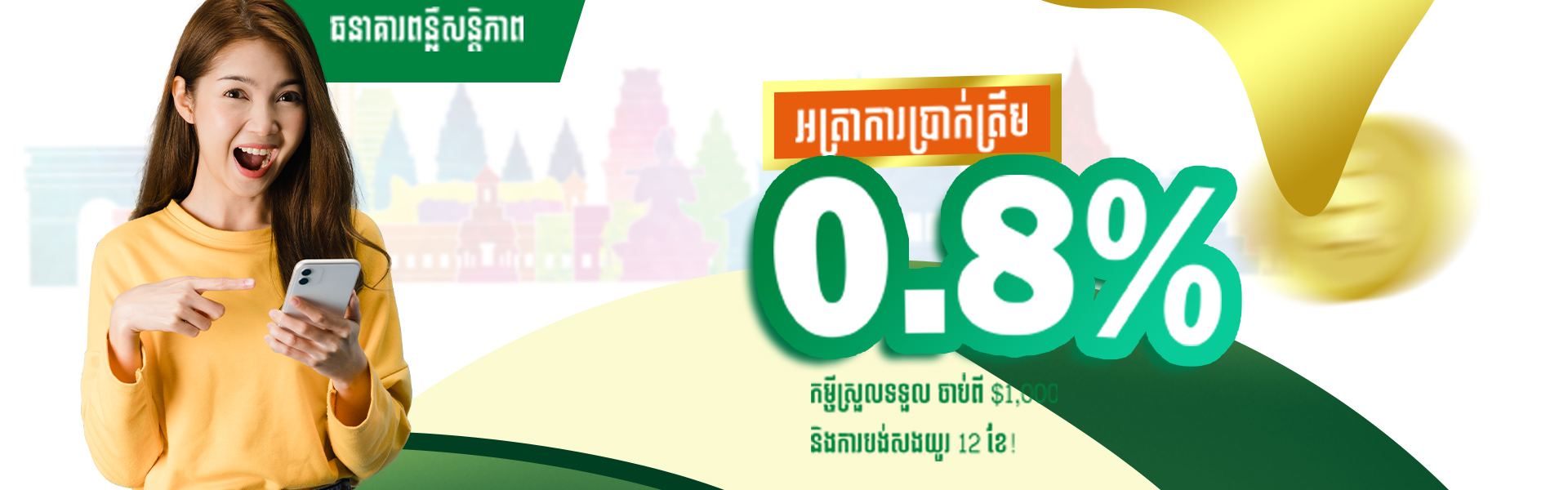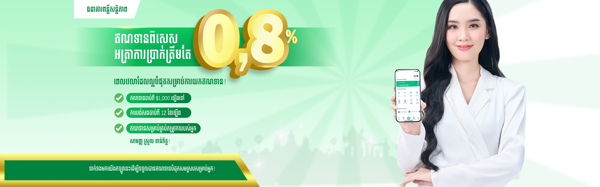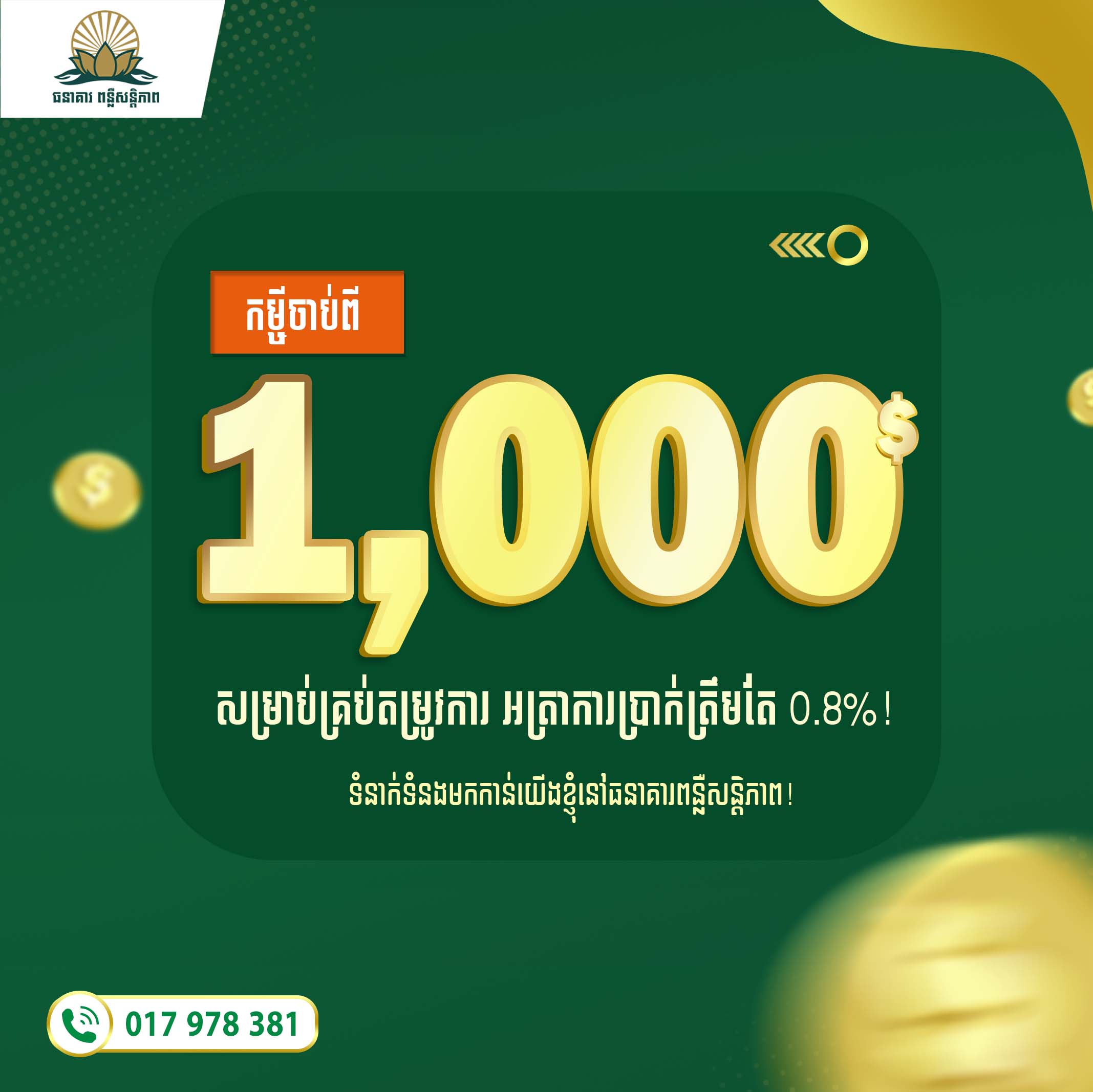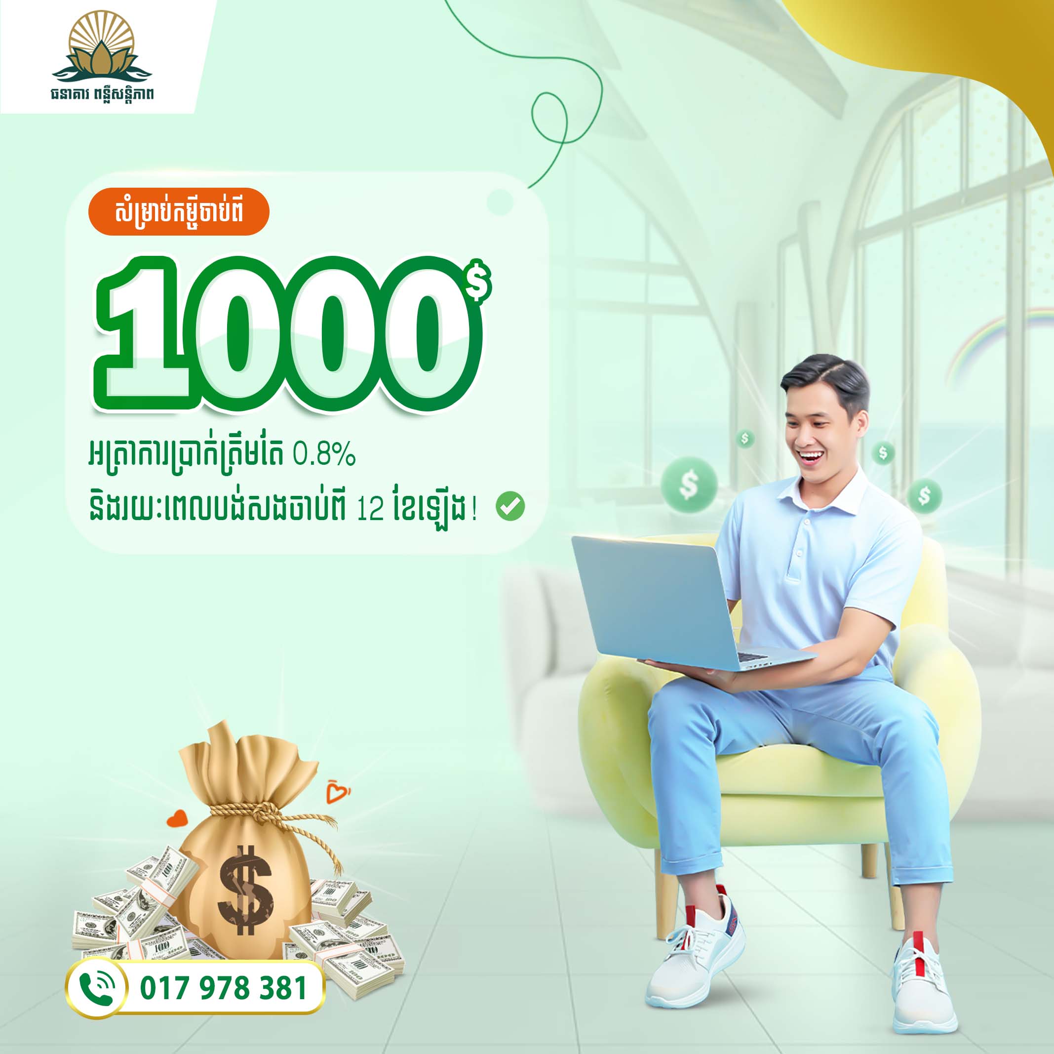 ចំនួនដាក់សន្សំប្រចាំខែតិច ចាប់ពី ៤០.០០០រៀល ឬ ១០ដុល្លារ